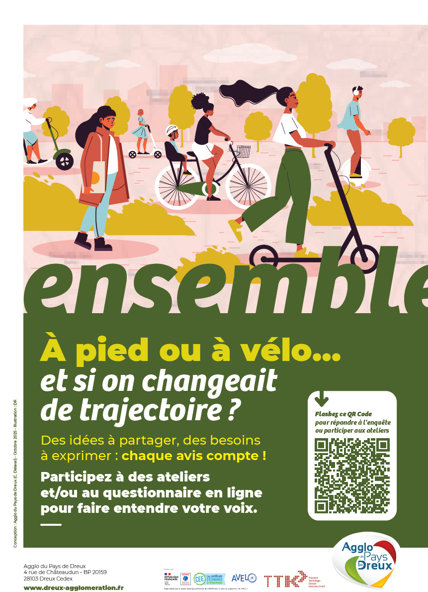 Dans le cadre de son Schéma Directeur des Modes Actifs (SDMA), l’Agglo du Pays de Dreux propose une démarche de concertation à ses habitants, afin de poursuivre le développement de la marche et du vélo, vers un territoire plus doux, sécurisé et accessible.