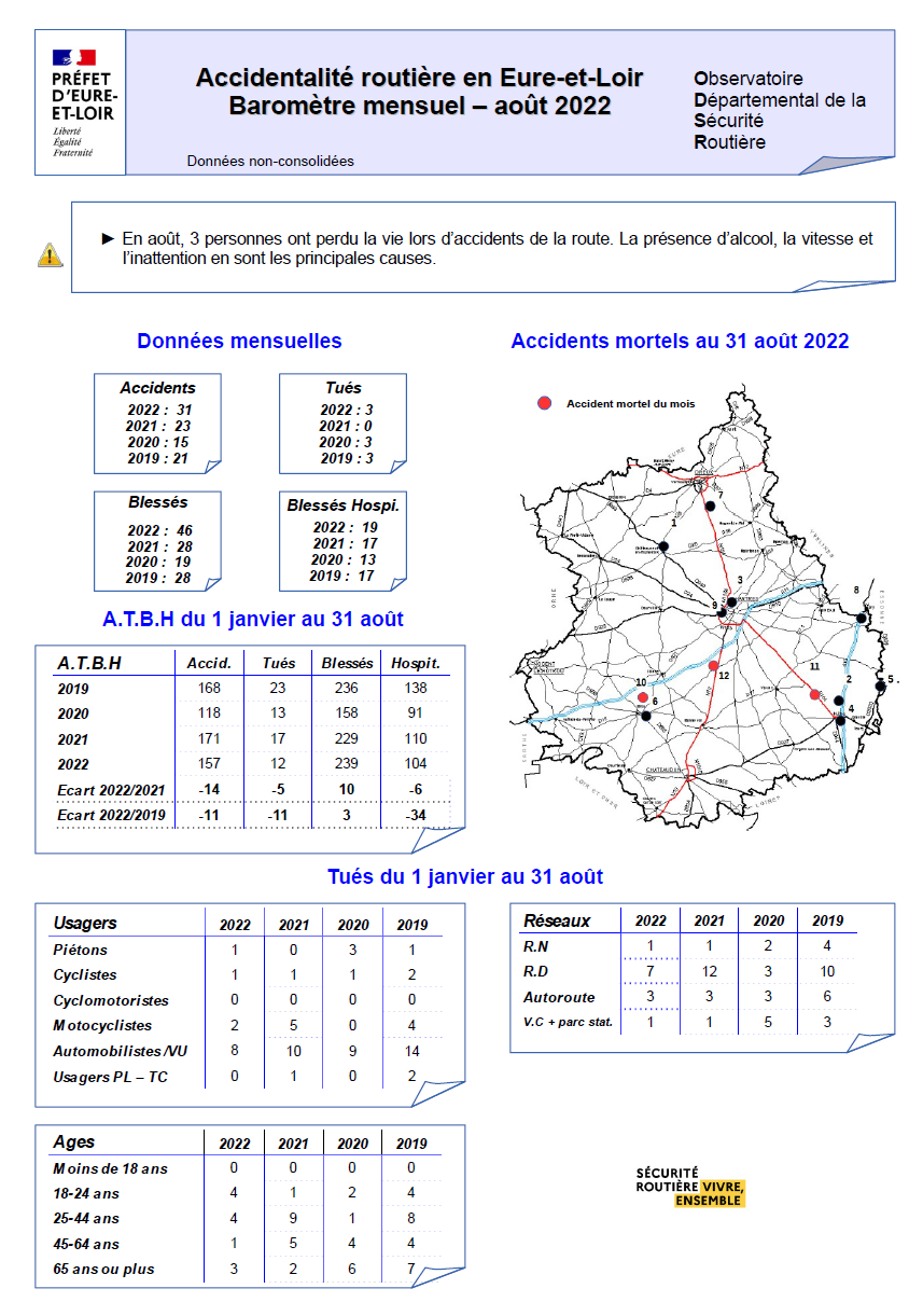 Baromètre de l’accidentalité routière du mois d’août 2022