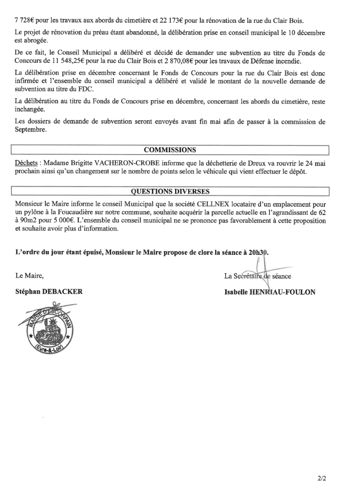 Procès verbal du conseil municipal du mardi 6 mai 2025