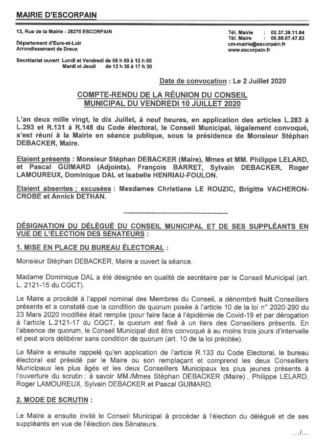 COMPTE RENDU DE LA RÉUNION DE CONSEIL DU 10 juillet 2020
