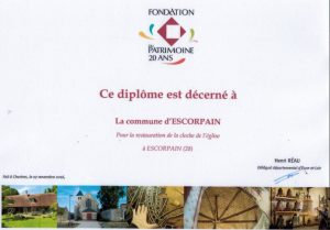 Patrimoine Patrimoine La cloche de l’église avant la restauration Fondation du patrimoine Diplôme de la fondation du patrimoine reçu pour la restauration de la cloche de l’église. (7 novembre 2016)