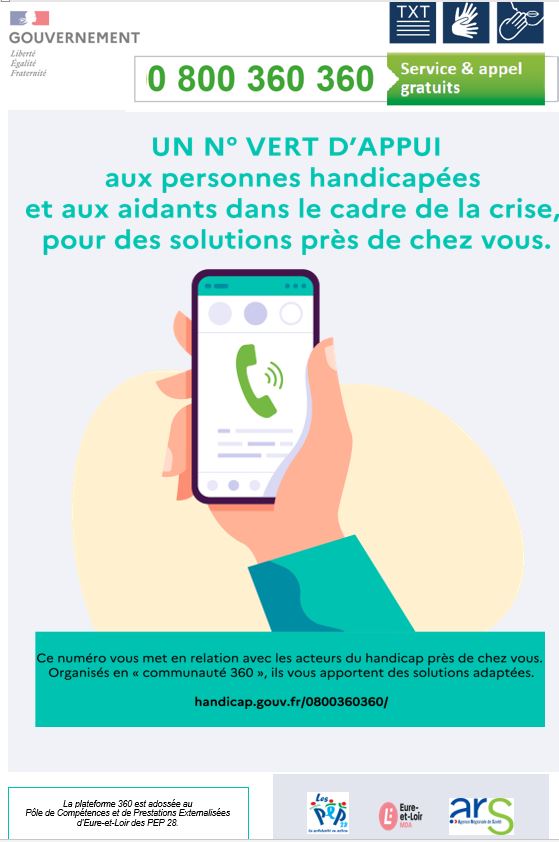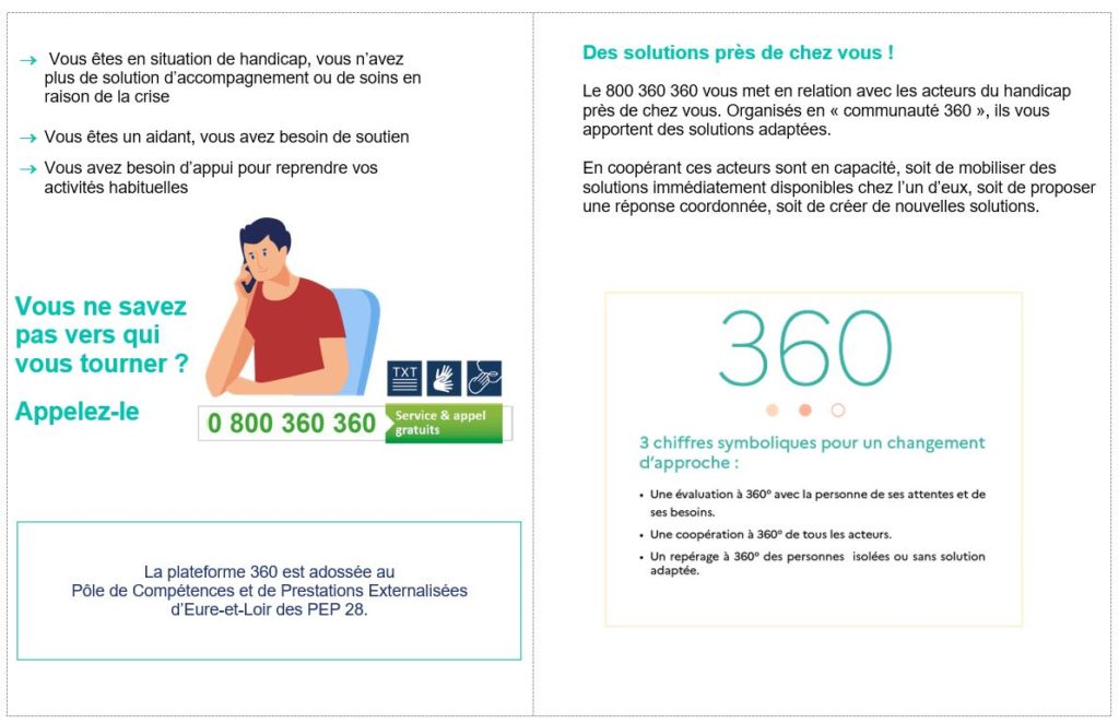 PLATEFORME 360 N° VERT D’APPUI dédié aux personnes en situation de handicap et aux aidants – PEP28 MDA28 ARS8