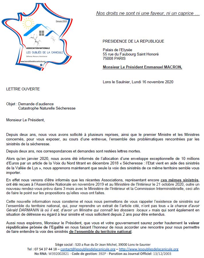 LETTRE OUVERTE – PRESIDENCE DE LA REPUBLIQUE / TOUS SÉNATEURS ET DÉPUTÉS.