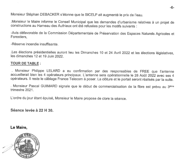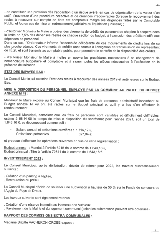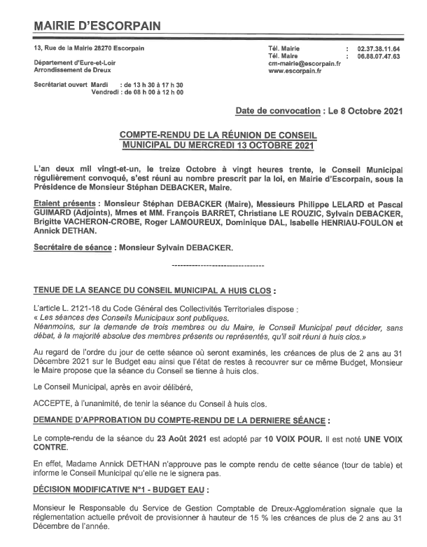 COMPTE-RENDU DE LA RÉUNION DU CONSEIL MUNICIPAL DU 13 octobre 2021