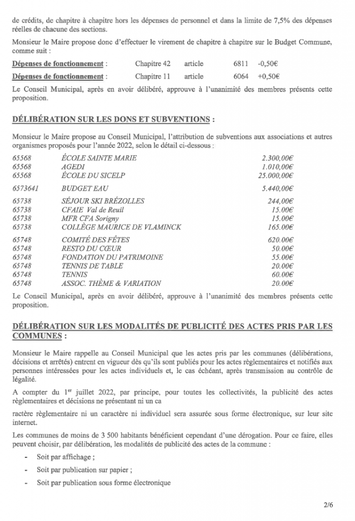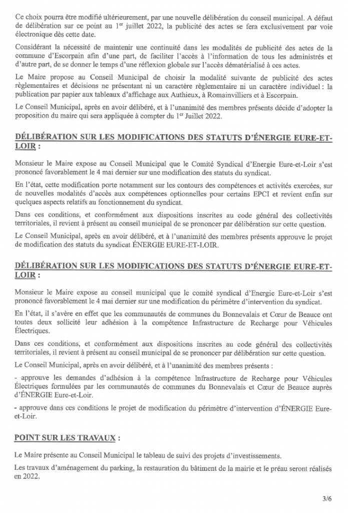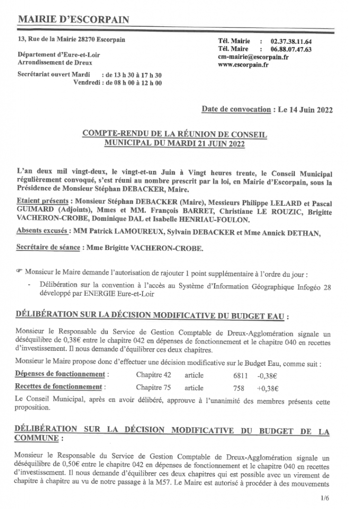 COMPTES-RENDUS DES RÉUNION DU CONSEIL du 21 juin 2022