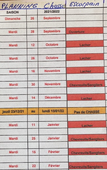 Chasse Il y a plusieurs association de chasse sur la commune. Nous n’avons pour le moment que les informations de l’une d’entre elle. Territoire de chasse de l’association de chasse Escorpinoise La chasse sur cette partie de la commune est le mardi.