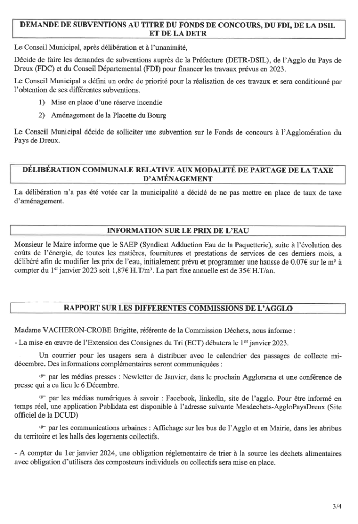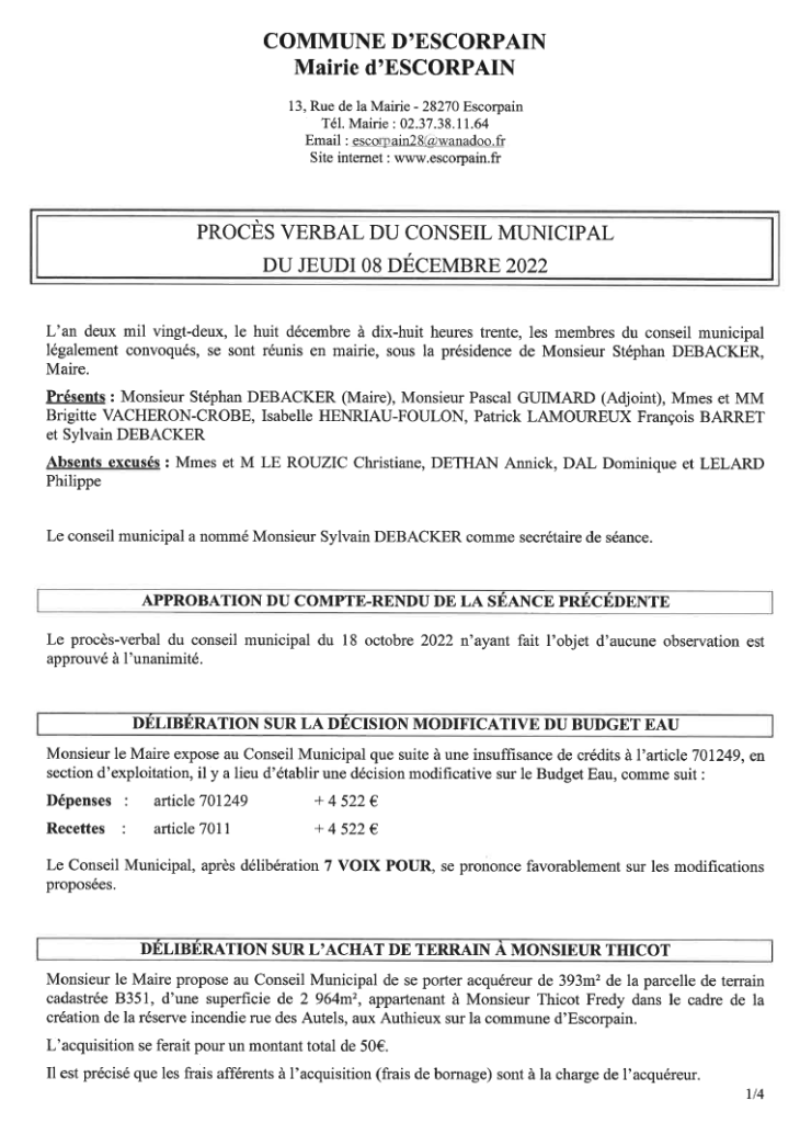 Conseil municipal du 8 décembre 2022