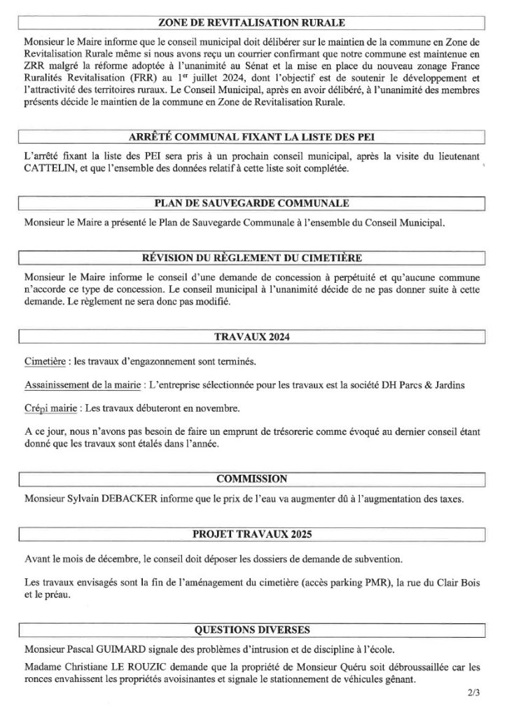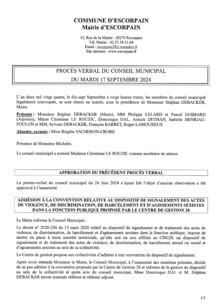 Procès verbal du Conseil Municipal du 17 septembre 2024