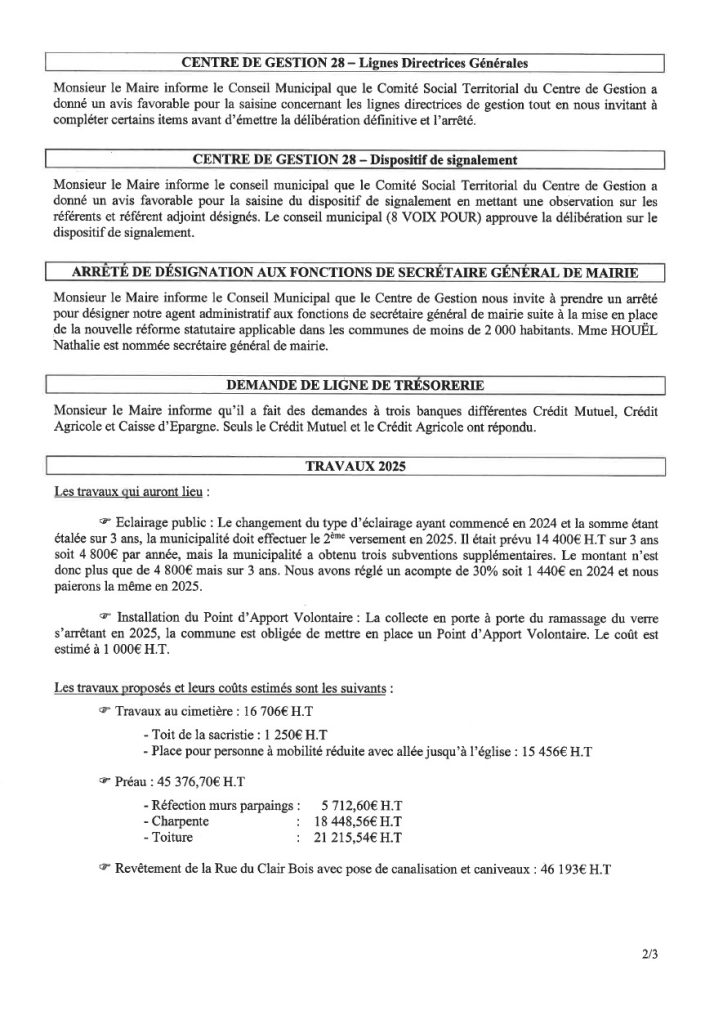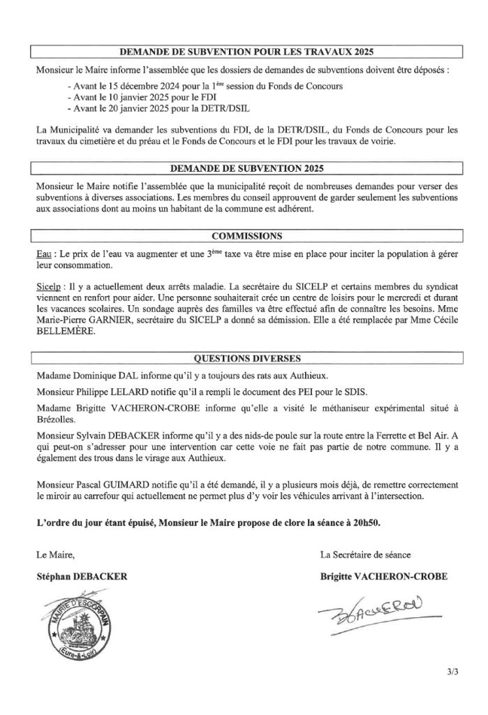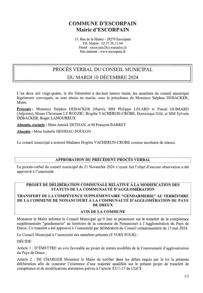 Procès verbal du conseil municipal du mardi 10 décembre 2024